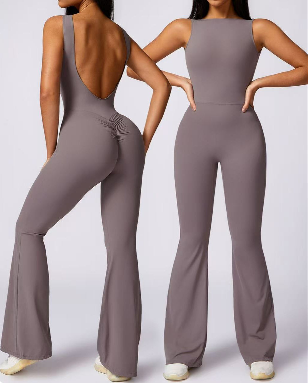 Ten elegancki kombinezon sportowy to połączenie minimalistycznego designu i pełnej funkcjonalności. Zabudowany dekolt nadaje mu nowoczesnego charakteru, a dopasowany krój pięknie podkreśla sylwetkę, jednocześnie gwarantując wygodę podczas ruchu. Rozszerzane nogawki dodają całości lekkości i stylu, dzięki czemu kombinezon świetnie sprawdzi się nie tylko podczas treningów, ale również jako element casualowych stylizacji. Wykonany z elastycznego, oddychającego materiału zapewnia komfort noszenia zarówno na siłowni, podczas jogi czy fitnessu, jak i w codziennych aktywnościach. To ponadczasowa propozycja dla kobiet, które chcą łączyć sportową wygodę z kobiecym stylem.
