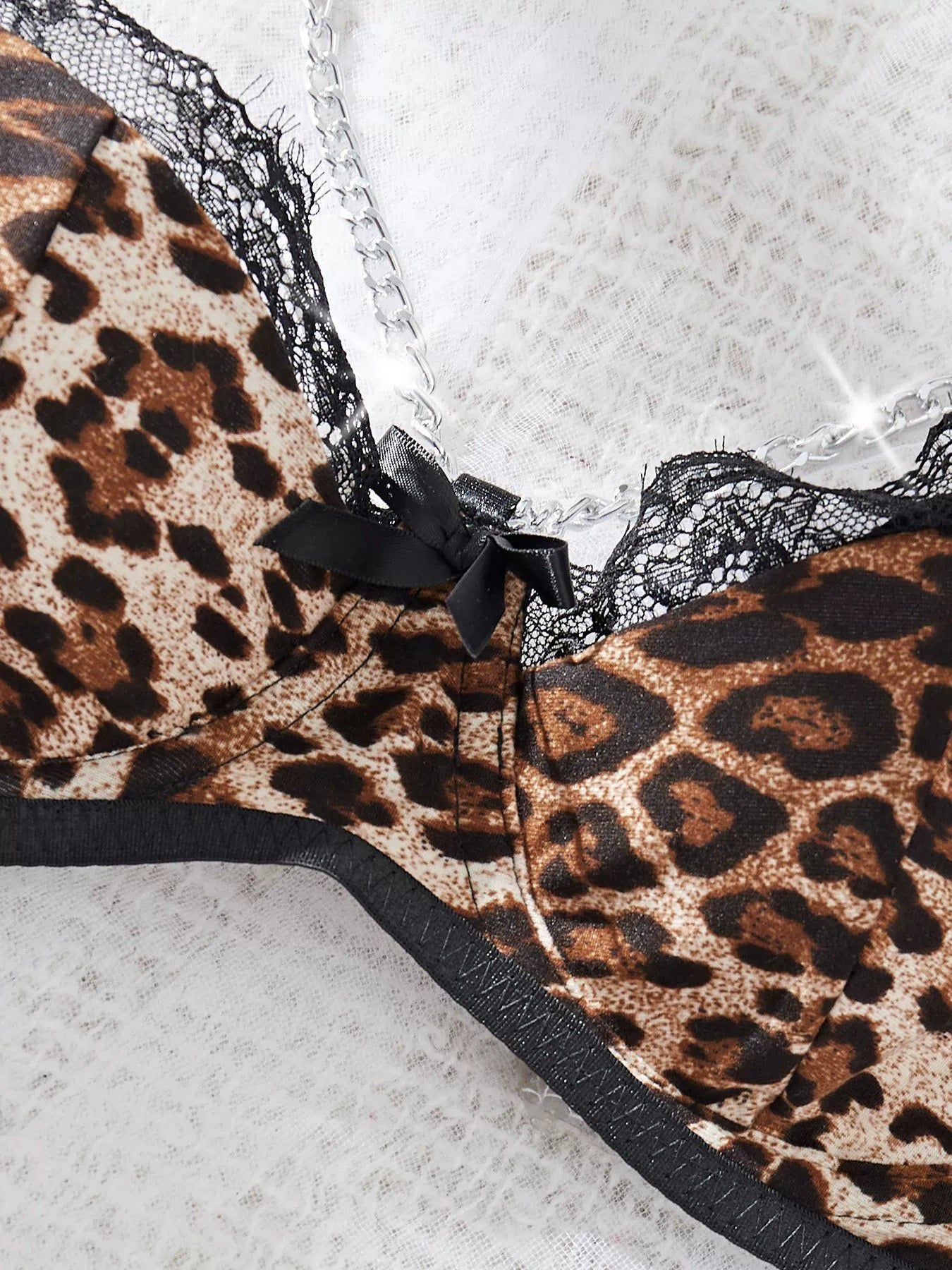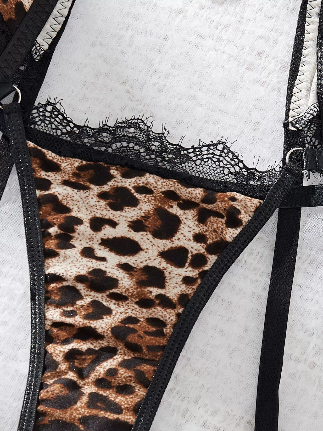 Komplet bielizny damskiej w panterkę z pasem do pończoch