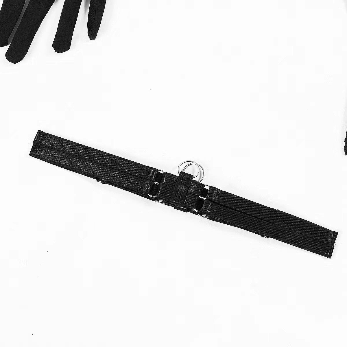 Zmysłowy komplet bielizny damskiej w intensywnej czerwieni, który zachwyca oryginalnym designem i odważnym charakterem. W skład zestawu wchodzą biustonosz z dekoracyjnymi paskami i ozdobnymi frędzlami, stringi, długie rękawiczki oraz pasy na uda, tworzące spójną i efektowną całość. Regulowane elementy zapewniają komfort noszenia i idealne dopasowanie do sylwetki, a nieszablonowy krój podkreśla kobiece kształty. To wyjątkowy komplet, który idealnie sprawdzi się na szczególne okazje, kiedy chcesz poczuć się pewnie i niezwykle atrakcyjnie.
