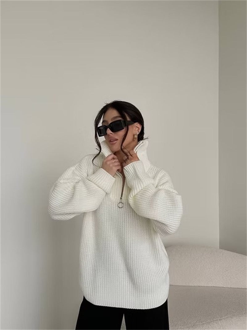Sweter z wysokim kołnierzem na zamek – nowoczesny minimalizm i wygoda